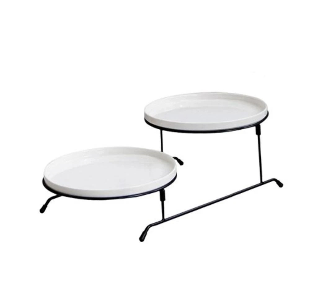 Crafted from high-quality ceramic, these trays are durable enough to handle daily use without chipping or cracking. The black metal stand is sturdy and lightweight, making it easy to move around while keeping your serving items elevated and organized. The smooth, glossy surface is not only visually appealing but also resistant to stains and heat, making it a smart choice for busy kitchens and festive occasions.