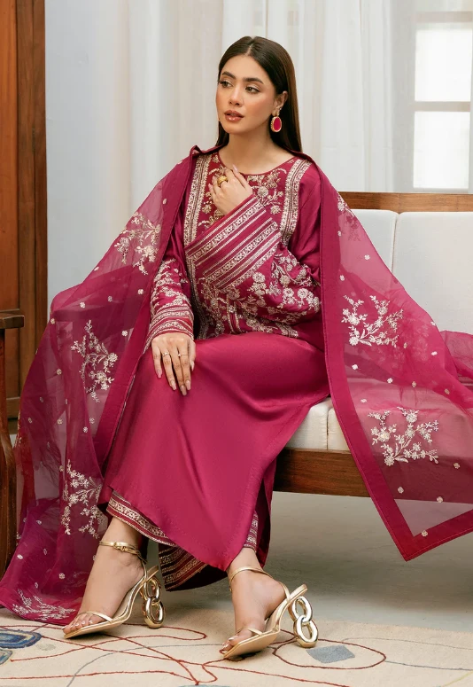 Experience timeless elegance with our 3 Piece Premium Silk Suit. Crafted from luxurious silk fabric, this ensemble offers a perfect blend of comfort and sophistication. The set includes a beautifully tailored shirt, matching trousers, and a graceful dupatta — all designed to make you shine at every occasion. Soft, smooth, and effortlessly stylish — a true statement of luxury.