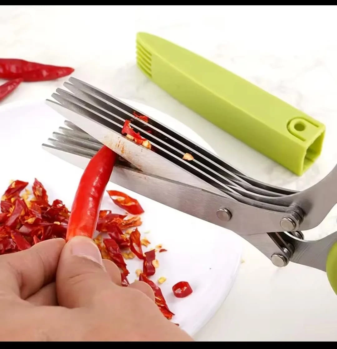 5-Layer Stainless Steel Scallion Scissors for Kitchen Use Perfect for busy Pakistani kitchens, these stylish kitchen shearsmake chopping herbs and vegetables effortless without the hassle of traditional knives. Ideal for home cooks, chefs, or anyone who values quick, clean prep for everyday meals or festive gatherings.