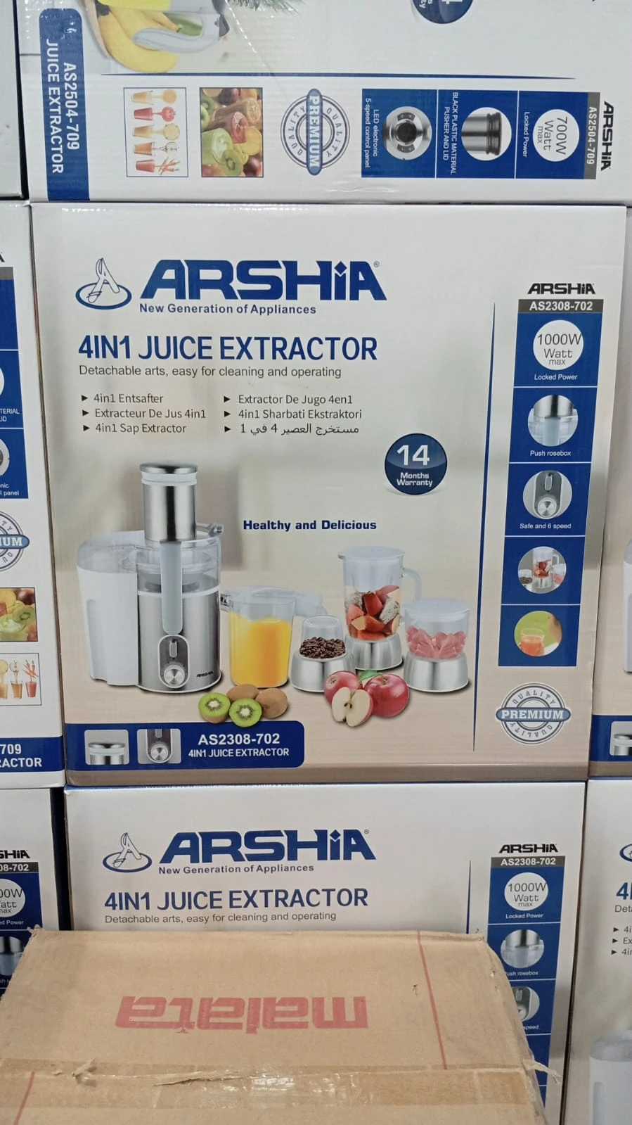 Bring home the perfect combination of innovation and efficiency with the ARSHIA 4-in-1 Juice Extractor (Model: AS2308-702). Designed for modern kitchens, this powerful appliance makes it easier than ever to prepare fresh juices, smoothies, and more — all with one compact machine. Whether you're starting your day with a healthy juice or preparing ingredients for meals, this versatile extractor is your ideal kitchen companion.