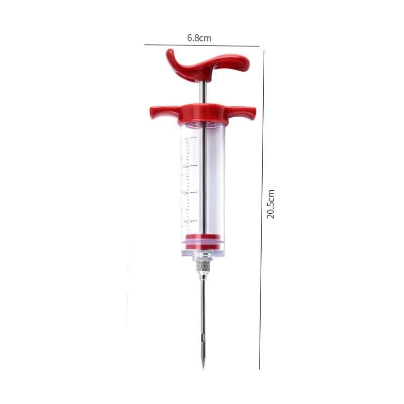 Kitchen Seasoning Syringe BBQ Meat Marinade Injector with Turkey Chicken Sauce Stainless Steel Injection Kitchen Tool AccessorieDescription:Product Name: Seasoning SyringeNet Weight: 65g ( Set)Color: RedMaterial: Stainless Steel ABS PlasticSpecifications:The Generous 1.2-ounce Capacity Makes Spiced Brisket, Chicken, And Turkey A Breeze!2. The Marinating Needle Liquids And Solids Means You Can Season Your Meat All The Time, Unlike Traditional Basting Brushes That Only Season The Surface!3. Made Of High-quality ABS Stainless Steel, Wear-resistant And Durable.4. The Marinating Needle Is Very Suitable For Injecting Liquid And Solid Into The Meat, Simple Operation.5. Handle With Holes, Comfortable To Touch, Convenient And Safe To Use.Package Included:1*turkey Syringe1*needleor1*needle