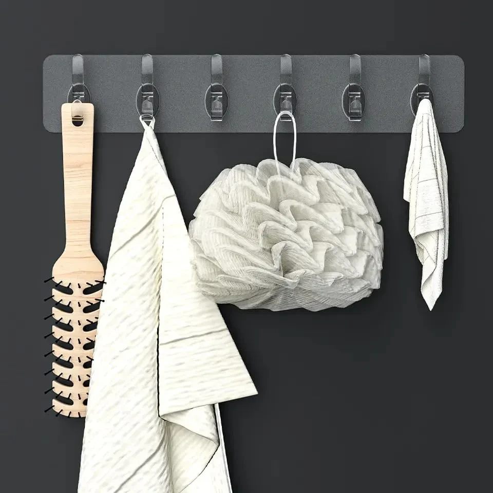 Keep your home organized, clutter-free, and stylish with the Wall Hooks Hanger, a versatile and durable solution for hanging clothes, towels, bags, kitchen utensils, keys, and other household items. Designed for bedrooms, bathrooms, kitchens, living rooms, doors, and closets, this transparent 6-hook set combines convenience, strength, and aesthetic appeal, making it a must-have accessory for modern living.