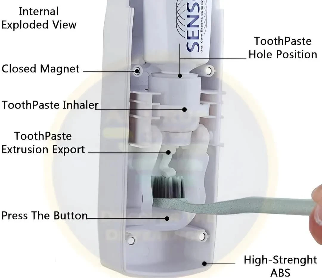 White Automatic Toothpaste Dispenser with 5 Brush Holder Perfect for Pakistani homes, this automatic toothpaste dispenser and brush holder set keeps your bathroom neat and hygienic without any hassle. Designed for local use, it’s ideal for families who want to avoid messy toothpaste tubes and cluttered brushes. The ABS plastic construction ensures long-lasting durability even in humid bathrooms, while the anti-microbial surface helps prevent germ buildup — perfect for health-conscious households.