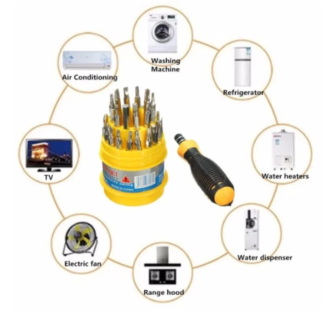 This new arrival is designed with practicality in mind. The transparent, multicolor storage case keeps all 31 precision bits neatly organized and protected, while the sturdy green base and bright orange handle make it easy to carry and store. Its portable size fits perfectly in a tool bag or even your pocket, so you’re never without the right tool. The set includes a variety of screwdriver tips to handle every common fastening job, from small electronics to heavy-duty furniture. Made with premium quality materials, it’s built to last and deliver consistent performance.