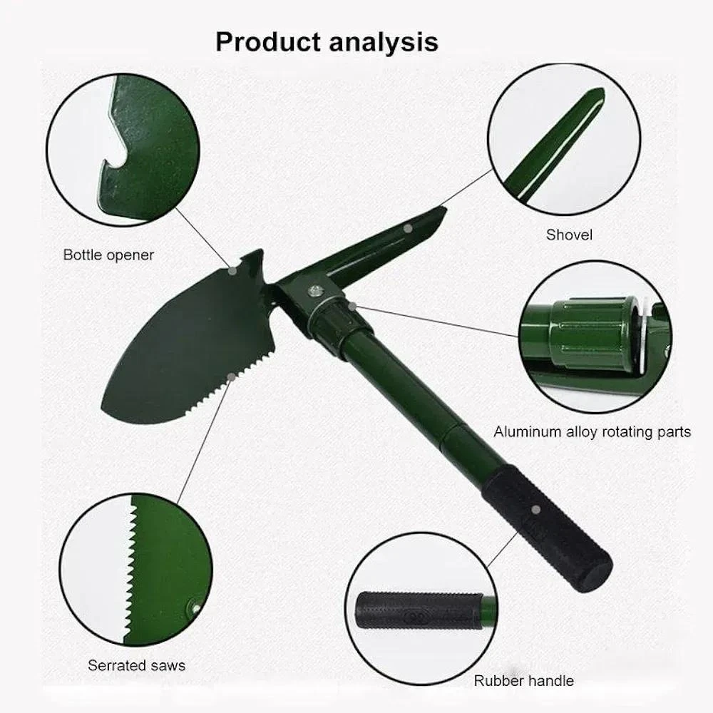 Green Foldable Multi-Tool Shovel with Saw & Bottle Opener This premium quality foldable shovel is the perfect tool for every Pakistani homeowner, gardener, or outdoor enthusiast. Designed for durability and stylish functionality, it’s ideal for digging, cutting, and even opening bottles — all in one compact, green tool. Whether you’re tending to your backyard garden or preparing for unexpected outdoor tasks, this multi-functional shovel delivers professional-grade performance with its stainless steel construction and ergonomic rubber handle.