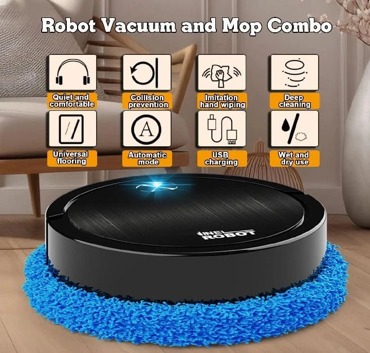 3-in-1 Cleaning Function: Sweeps, mops, and collects dust simultaneously.
