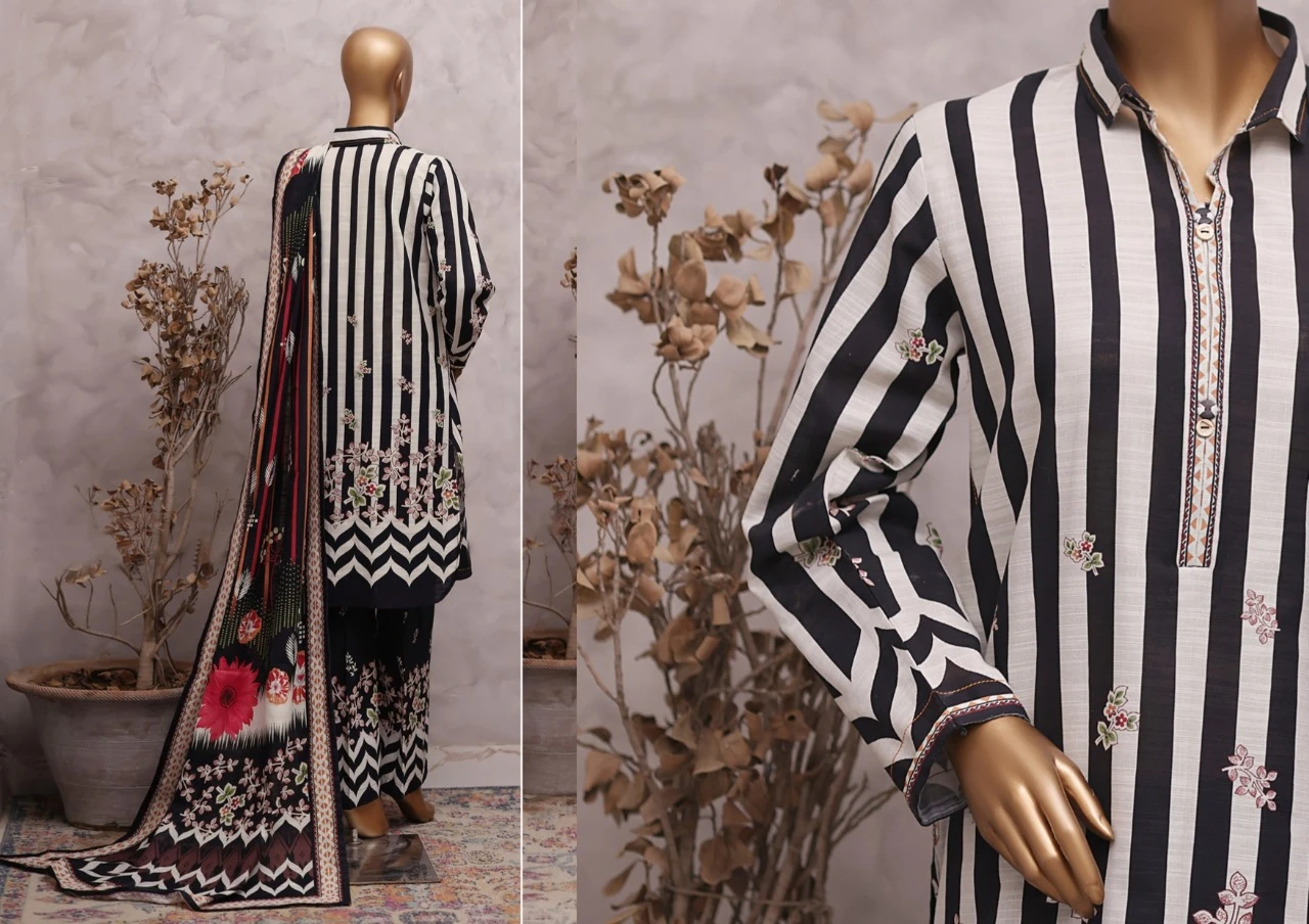 This beautiful 3-piece khaddar suit features a stunning Diffuse Floral print, making it a perfect choice for the winter season. The soft khaddar fabric paired with delicate artistic patterns gives it an elegant and versatile look—ideal for casual outings as well as everyday wear.