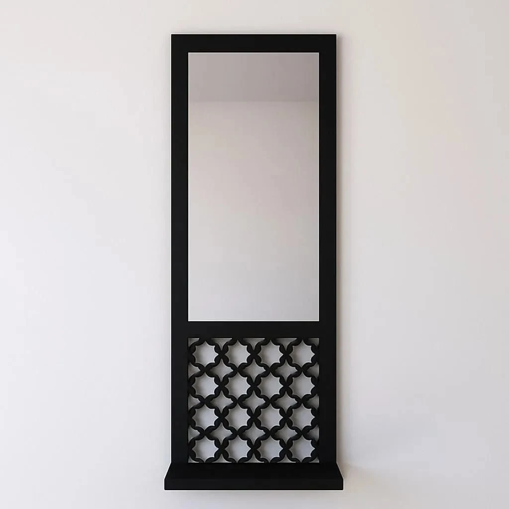 Modern Abstract Wooden Mirror Wall Shelves Set of 3 Upgrade your home with this stunning set of three modern acrylic mirrors with wooden shelves. Perfect for Pakistani homes, this stylish wall décor adds both function and elegance to any room, whether it’s your bedroom, living area, or office. The sleek black finish and laser-cut geometric patterns bring a contemporary touch that complements any interior design. Durable and easy to maintain, these pieces are crafted to last, making them a smart investment for your home.