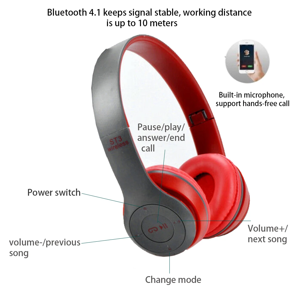 It features a built-in microphone for hands-free calls, FM radio, and TF card support, allowing you to listen to music even without a phone. The foldable design makes it easy to carry and perfect for travel.