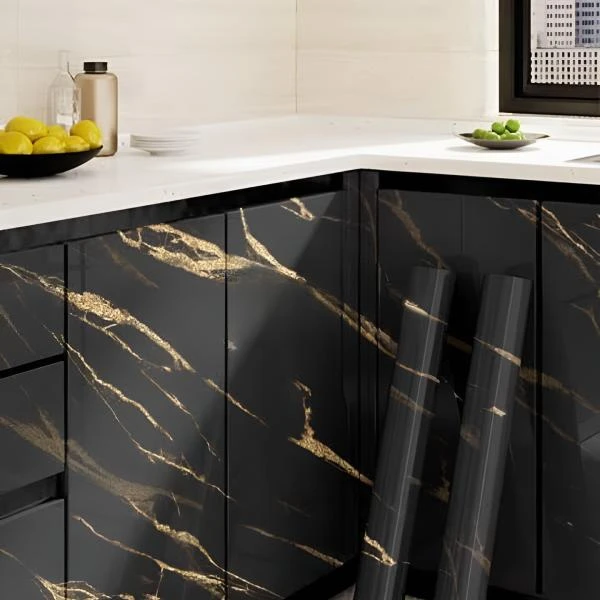 Self Adhesive Black Gold Marble Sheet 200x60cm Upgrade your kitchen or living space with this stunning self-adhesive black and golden marble sheet. Perfect for Pakistani homes, it adds instant luxury without the hassle of installation or high costs. Ideal for modern apartments, offices, or even wedding venues, this sheet transforms any dull surface into a chic, elegant focal point.